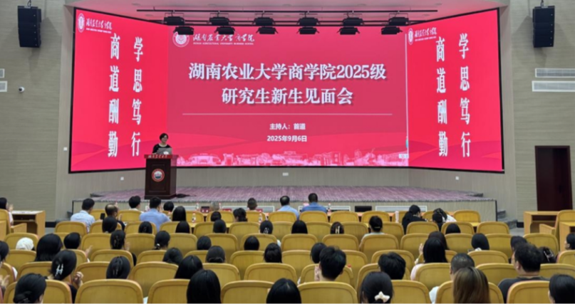 2025年9月6日晚,湖南农业大学商学院2025级研究生新生见面会在图书馆大成厅举行。本次会议有2025级国际商务专业的17名新生参与,旨在助力新生迅速融入学术氛围,并为商学院新一批研究生明确未来方向。