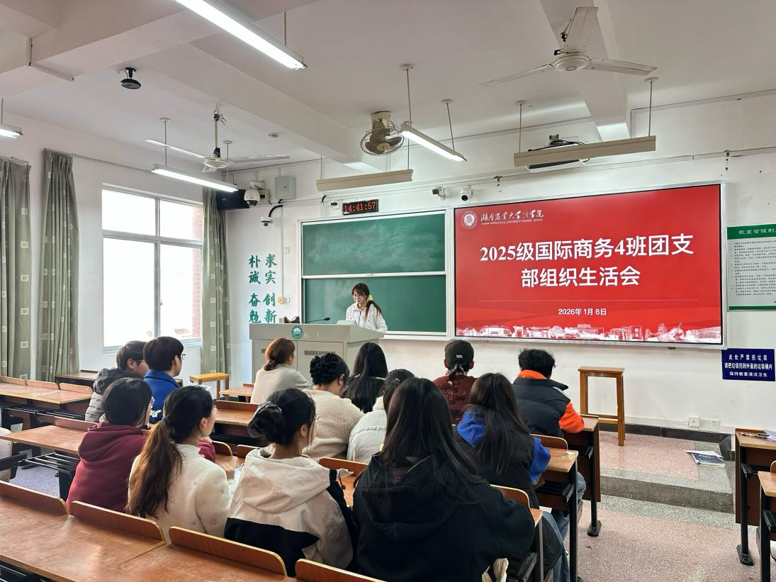 本网讯(商学院 叶子)2026年1月8日,我院2025级国际商务4班团支部于十教北503教室召开组织生活会,本次会议旨在引导支部团员总结学期成长收获、查摆自身短板不足、明确整改提升方向,班主任许烜老师受邀出席并作点评指导。